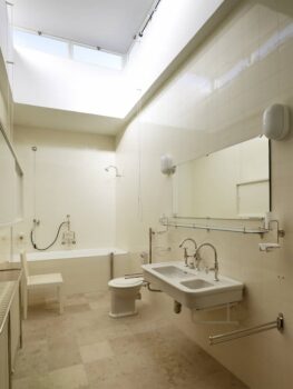 Designed to be purely functional, the starkness of these spaces comes as a bit of shock compared to the second-floor main living area.